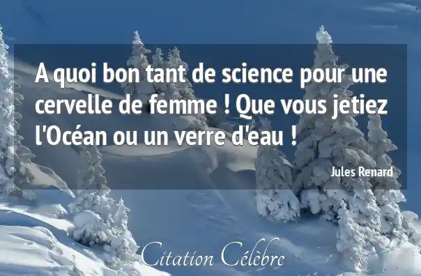 A quoi bon tant de science pour une cervelle de femme ! Que vous jetiez l'Océan ou un verre d'eau !