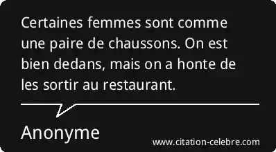 Certaines femmes sont comme une paire de chaussons. On est bien dedans, mais on a honte de les sortir au restaurant.