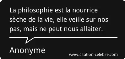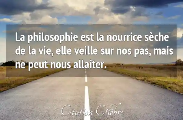 La philosophie est la nourrice sèche de la vie, elle veille sur nos pas, mais ne peut nous allaiter.