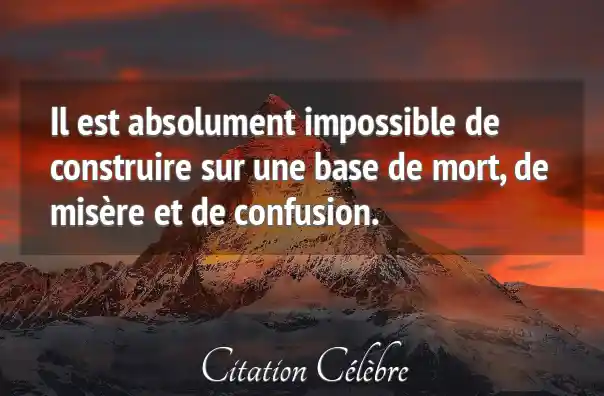 Il est absolument impossible de construire sur une base de mort, de misère et de confusion.