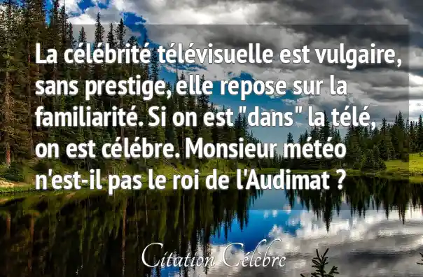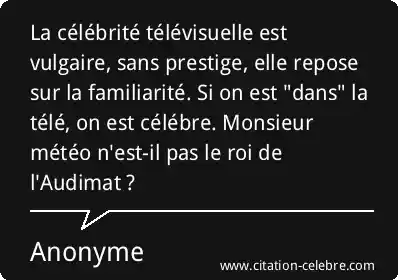 La célébrité télévisuelle est vulgaire, sans prestige, elle repose sur la familiarité. Si on est "dans" la télé, on est célébre. Monsieur météo n'est-il pas le roi de l'Audimat ?