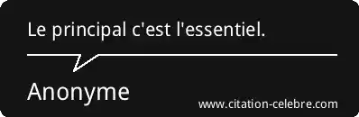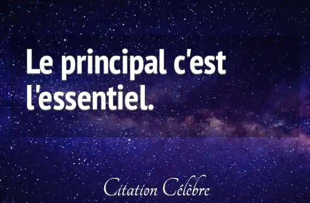 Cette citation, "Le principal c'est l'essentiel", exprime une idée de redondance constructive ou de simplification extrême. Elle affirme que ce qui est considéré comme la chose la plus importante (le principal) est par nature identique à ce qui est essentiel, c'est-à -dire ce dont on ne peut se passer et qui constitue le fondement. En d'autres termes, elle invite à ne pas s'éparpiller dans des détails secondaires et à se concentrer uniquement sur l'élément central et indispensable d'une situation, d'un objectif ou d'une idée.