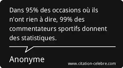Dans 95% des occasions où ils n'ont rien à dire, 99% des commentateurs sportifs donnent des statistiques.