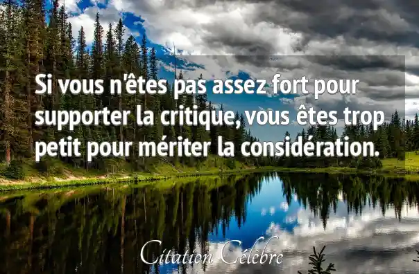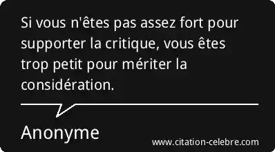 Si vous n'êtes pas assez fort pour supporter la critique, vous êtes trop petit pour mériter la considération.