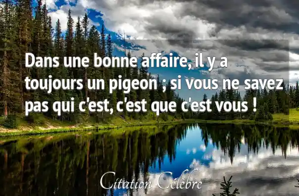 Dans une bonne affaire, il y a toujours un pigeon ; si vous ne savez pas qui c'est, c'est que c'est vous !