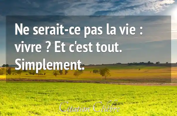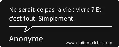 Ne serait-ce pas la vie : vivre ? Et c'est tout. Simplement.