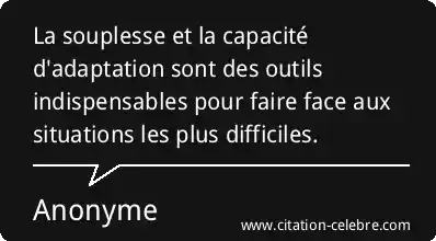 La souplesse et la capacité d'adaptation sont des outils indispensables pour faire face aux situations les plus difficiles.