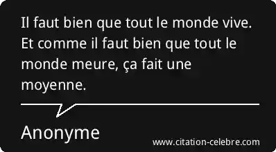 Il faut bien que tout le monde vive. Et comme il faut bien que tout le monde meure, ça fait une moyenne.