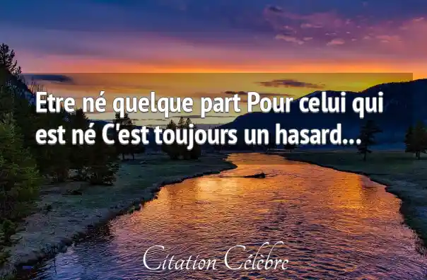 Etre né quelque part Pour celui qui est né C'est toujours un hasard...