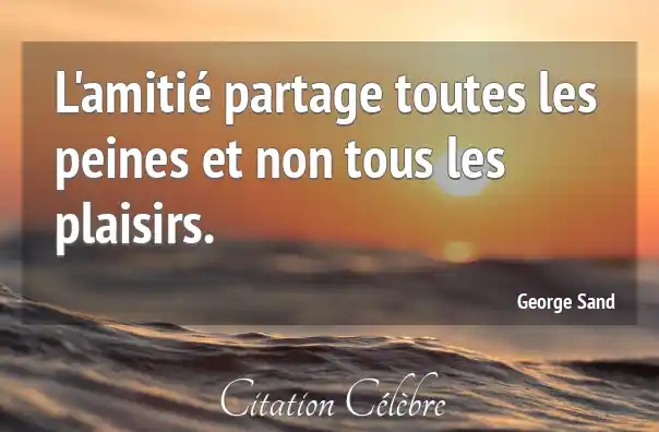 L'amitié partage toutes les peines et non tous les plaisirs.