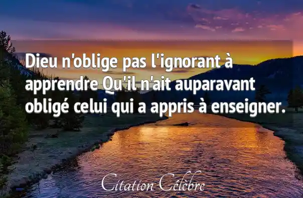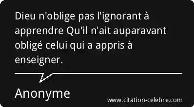 Dieu n'oblige pas l'ignorant à apprendre Qu'il n'ait auparavant obligé celui qui a appris à enseigner.