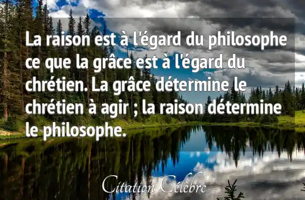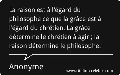 La raison est à l'égard du philosophe ce que la grâce est à l'égard du chrétien. La grâce détermine le chrétien à agir ; la raison détermine le philosophe.