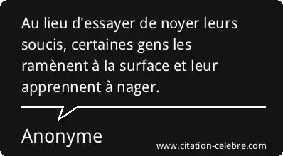 Au lieu d'essayer de noyer leurs soucis, certaines gens les ramènent à la surface et leur apprennent à nager.