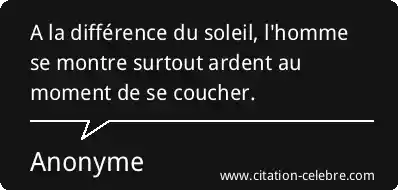 A la différence du soleil, l'homme se montre surtout ardent au moment de se coucher.