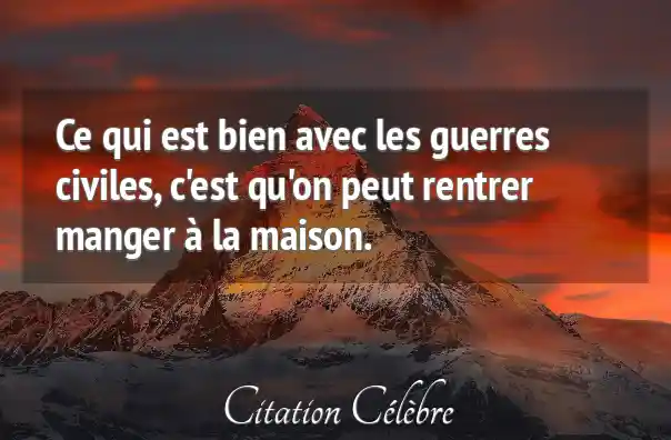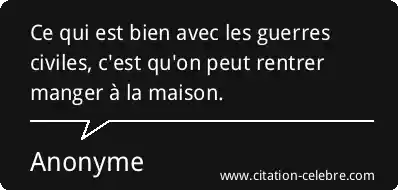 Ce qui est bien avec les guerres civiles, c'est qu'on peut rentrer manger à la maison.