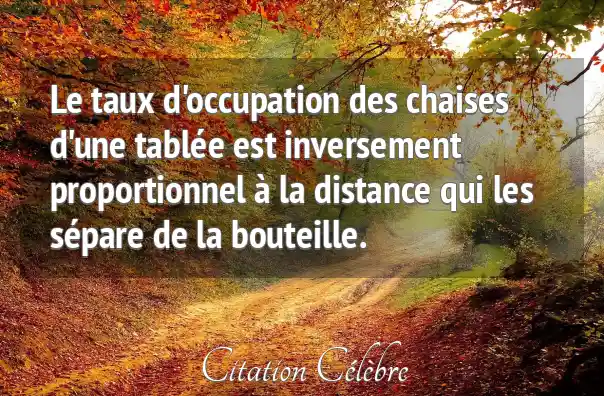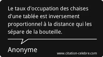 Le taux d'occupation des chaises d'une tablée est inversement proportionnel à la distance qui les sépare de la bouteille.