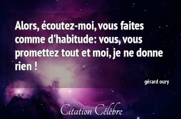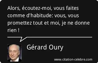 Alors, écoutez-moi, vous faites comme d'habitude: vous, vous promettez tout et moi, je ne donne rien !
