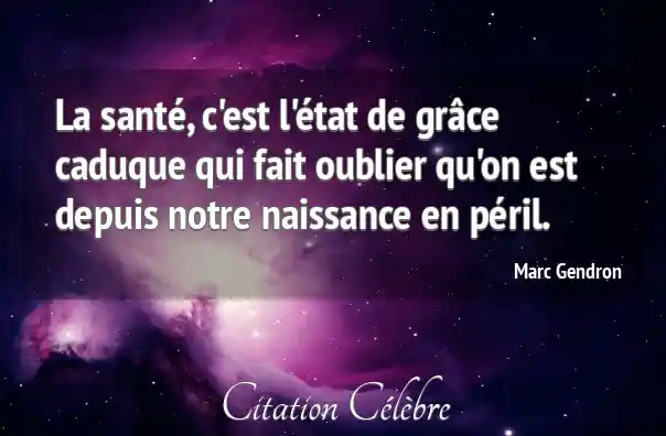 La santé, c'est l'état de grâce caduque qui fait oublier qu'on est depuis notre naissance en péril.