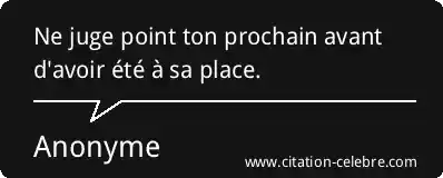 Ne juge point ton prochain avant d'avoir été à sa place.