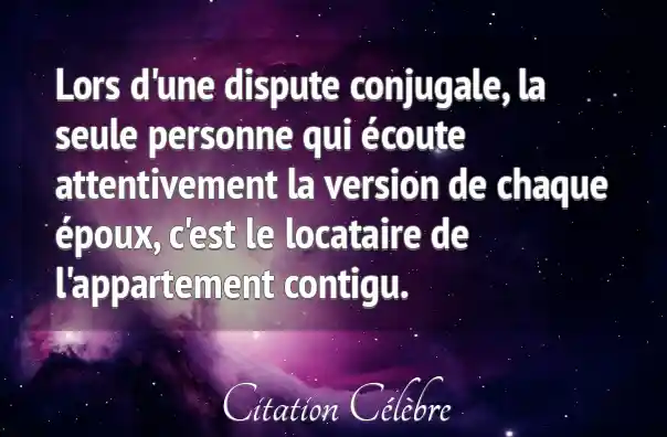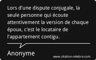 Lors d'une dispute conjugale, la seule personne qui écoute attentivement la version de chaque époux, c'est le locataire de l'appartement contigu.