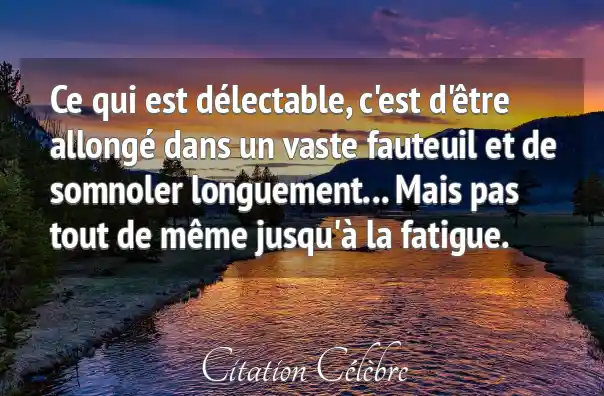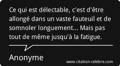Ce qui est délectable, c'est d'être allongé dans un vaste fauteuil et de somnoler longuement... Mais pas tout de même jusqu'à la fatigue.