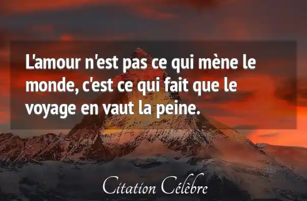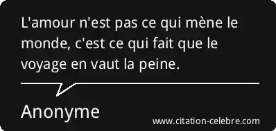 L'amour n'est pas ce qui mène le monde, c'est ce qui fait que le voyage en vaut la peine.