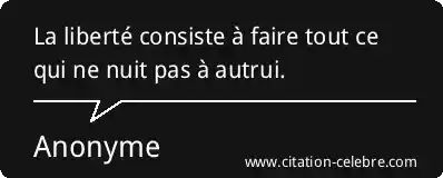 La liberté consiste à faire tout ce qui ne nuit pas à autrui.