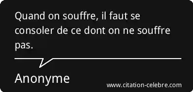 Quand on souffre, il faut se consoler de ce dont on ne souffre pas.