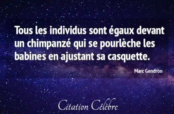 Tous les individus sont égaux devant un chimpanzé qui se pourlèche les babines en ajustant sa casquette.