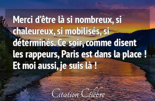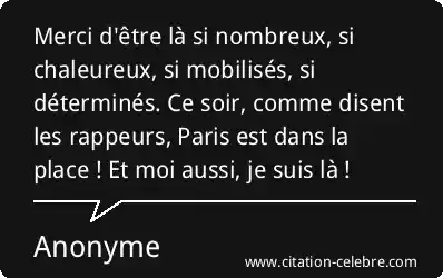 Merci d'être là si nombreux, si chaleureux, si mobilisés, si déterminés. Ce soir, comme disent les rappeurs, Paris est dans la place ! Et moi aussi, je suis là !