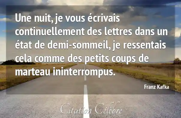 Une nuit, je vous écrivais continuellement des lettres dans un état de demi-sommeil, je ressentais cela comme des petits coups de marteau ininterrompus.