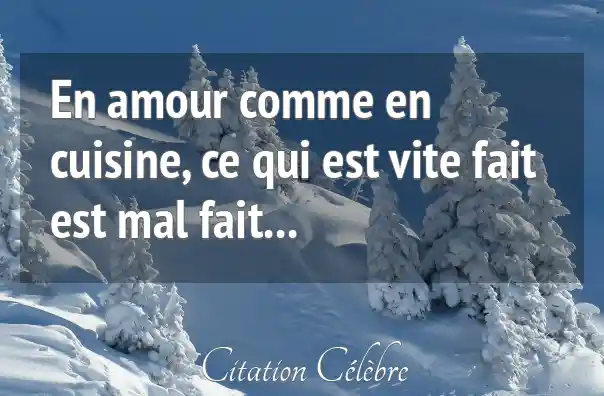 En amour comme en cuisine, ce qui est vite fait est mal fait...