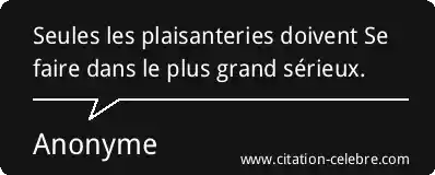 Seules les plaisanteries doivent Se faire dans le plus grand sérieux.