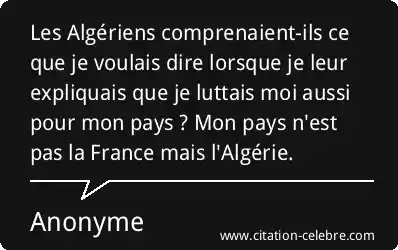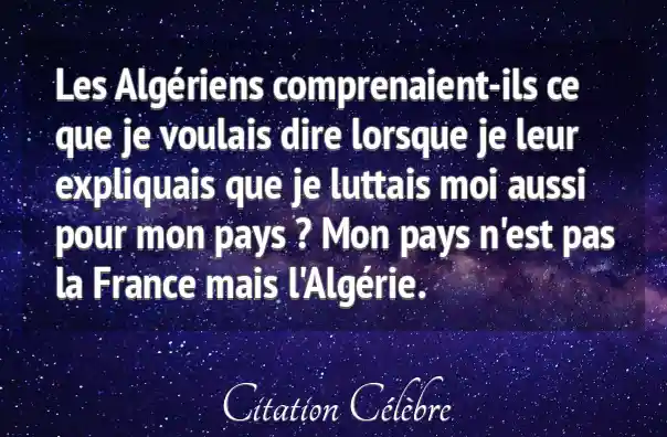 Les Algériens comprenaient-ils ce que je voulais dire lorsque je leur expliquais que je luttais moi aussi pour mon pays ? Mon pays n'est pas la France mais l'Algérie.