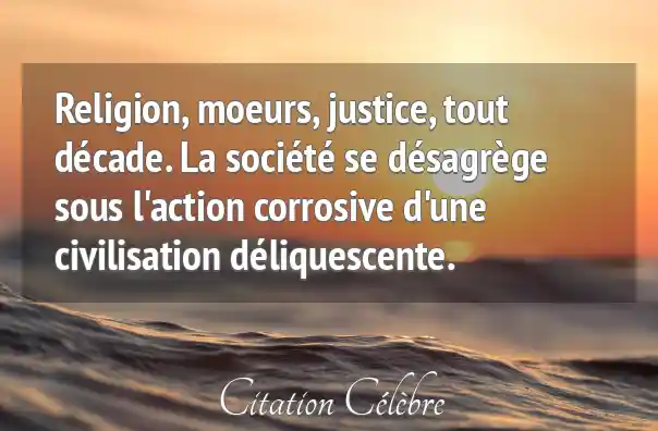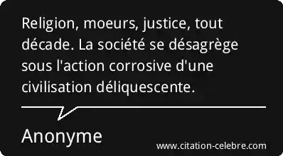 Religion, moeurs, justice, tout décade. La société se désagrège sous l'action corrosive d'une civilisation déliquescente.