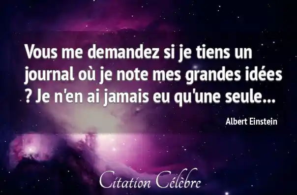 Vous me demandez si je tiens un journal où je note mes grandes idées ? Je n'en ai jamais eu qu'une seule...