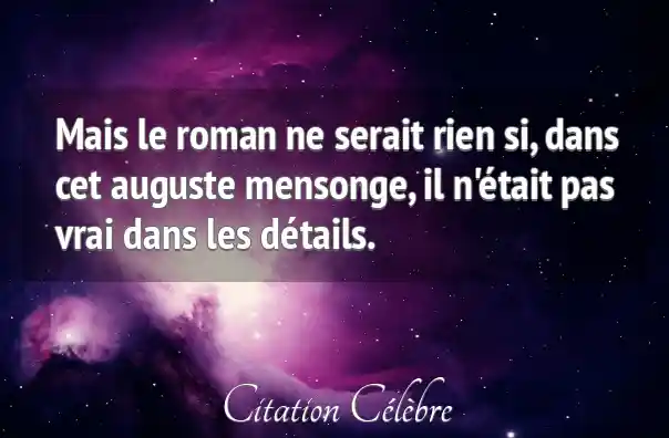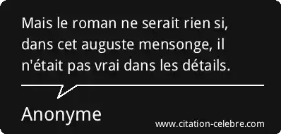 Mais le roman ne serait rien si, dans cet auguste mensonge, il n'était pas vrai dans les détails.