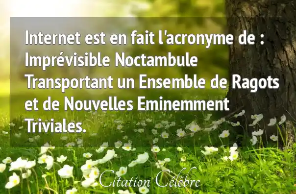 Internet est en fait l'acronyme de : Imprévisible Noctambule Transportant un Ensemble de Ragots et de Nouvelles Eminemment Triviales.