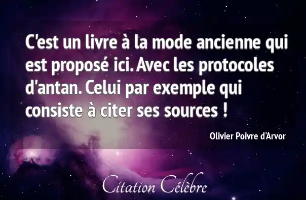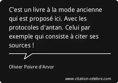 C'est un livre à la mode ancienne qui est proposé ici. Avec les protocoles d'antan. Celui par exemple qui consiste à citer ses sources !