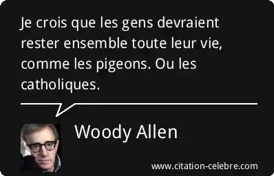 Je crois que les gens devraient rester ensemble toute leur vie, comme les pigeons. Ou les catholiques.