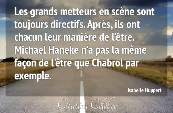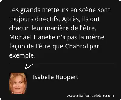 Les grands metteurs en scène sont toujours directifs. Après, ils ont chacun leur manière de l'être. Michael Haneke n'a pas la même façon de l'être que Chabrol par exemple.
