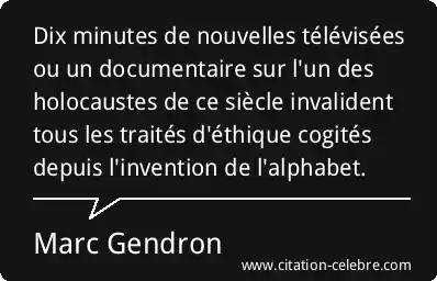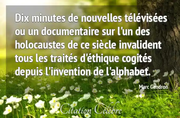 Dix minutes de nouvelles télévisées ou un documentaire sur l'un des holocaustes de ce siècle invalident tous les traités d'éthique cogités depuis l'invention de l'alphabet.