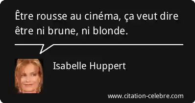 Citation Isabelle Huppert dire : Être rousse au cinéma, ça veut dire être ni brune,...