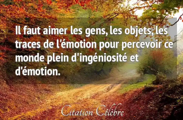Il faut aimer les gens, les objets, les traces de l'émotion pour percevoir ce monde plein d'ingéniosité et d'émotion.