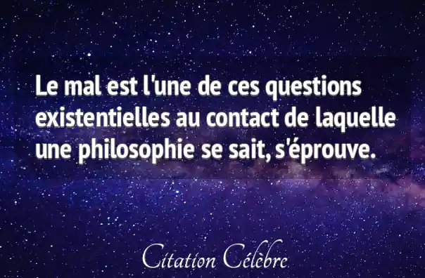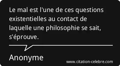 Le mal est l'une de ces questions existentielles au contact de laquelle une philosophie se sait, s'éprouve.