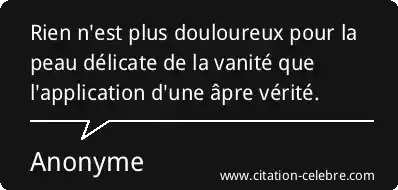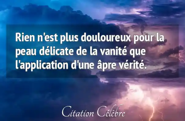Rien n'est plus douloureux pour la peau délicate de la vanité que l'application d'une âpre vérité.