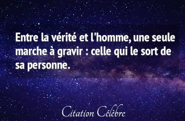 Entre la vérité et l'homme, une seule marche à gravir : celle qui le sort de sa personne.