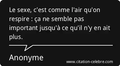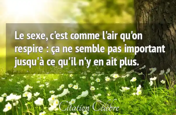 Le sexe, c'est comme l'air qu'on respire : ça ne semble pas important jusqu'à ce qu'il n'y en ait plus.
