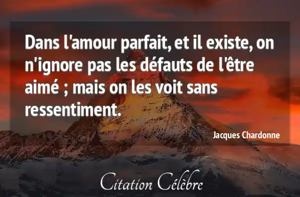 Dans l'amour parfait, et il existe, on n'ignore pas les défauts de l'être aimé ; mais on les voit sans ressentiment.
