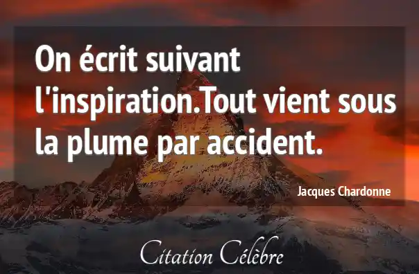 On écrit suivant l'inspiration.Tout vient sous la plume par accident.